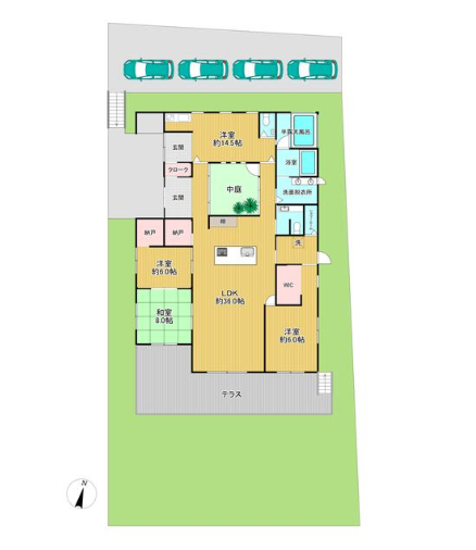 ゆとりある居住空間:リビング・ダイニング・キッチンだけで60㎡、延床面積は179.69㎡の広さ